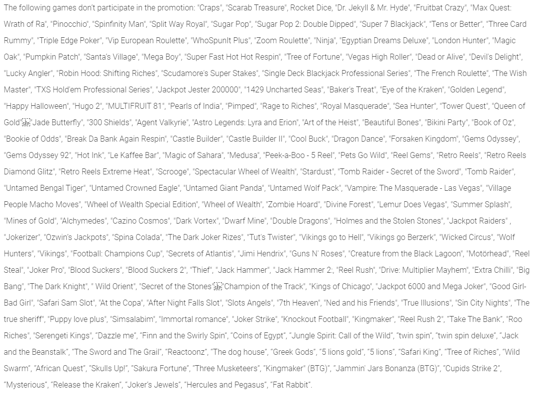 > Certaines machines à sous contribuent moins ou pas du tout au décompte du playthrough.